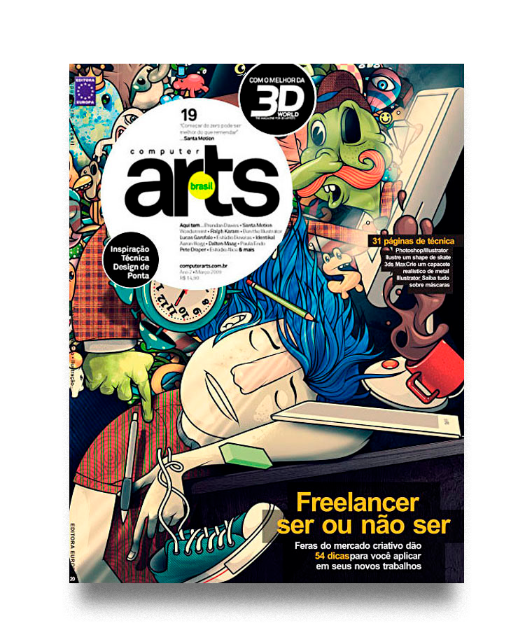 The creation of a cover for the magazine Computer Arts Brasil, the theme of the edition was the life and routine of those who work as a freelancer.