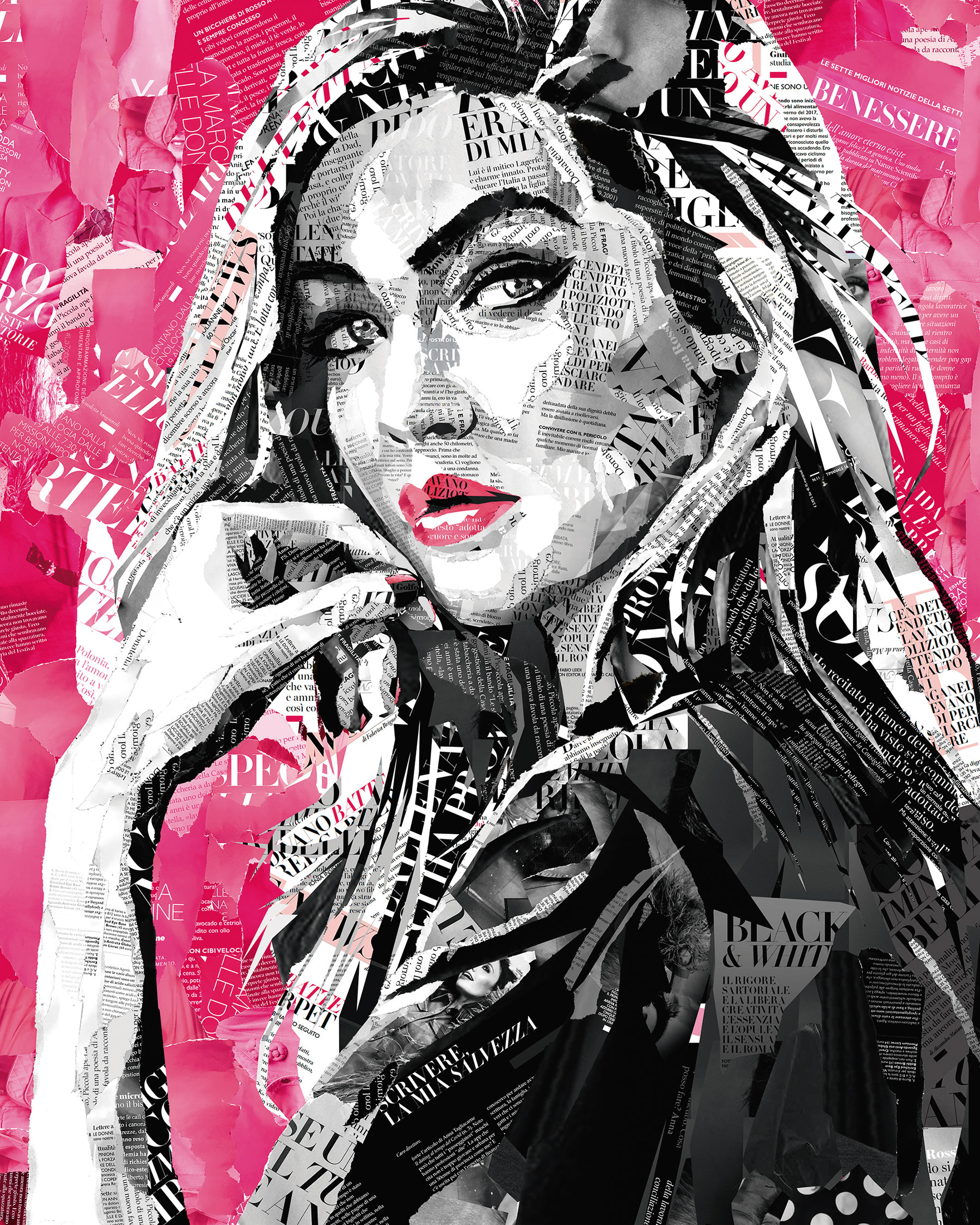 To promote the new stance "Tu, parola per parola" for the Italian magazine F, we created an illustration to be applied in a printed campaign using cutouts from the magazine itself to form the illustration's character.