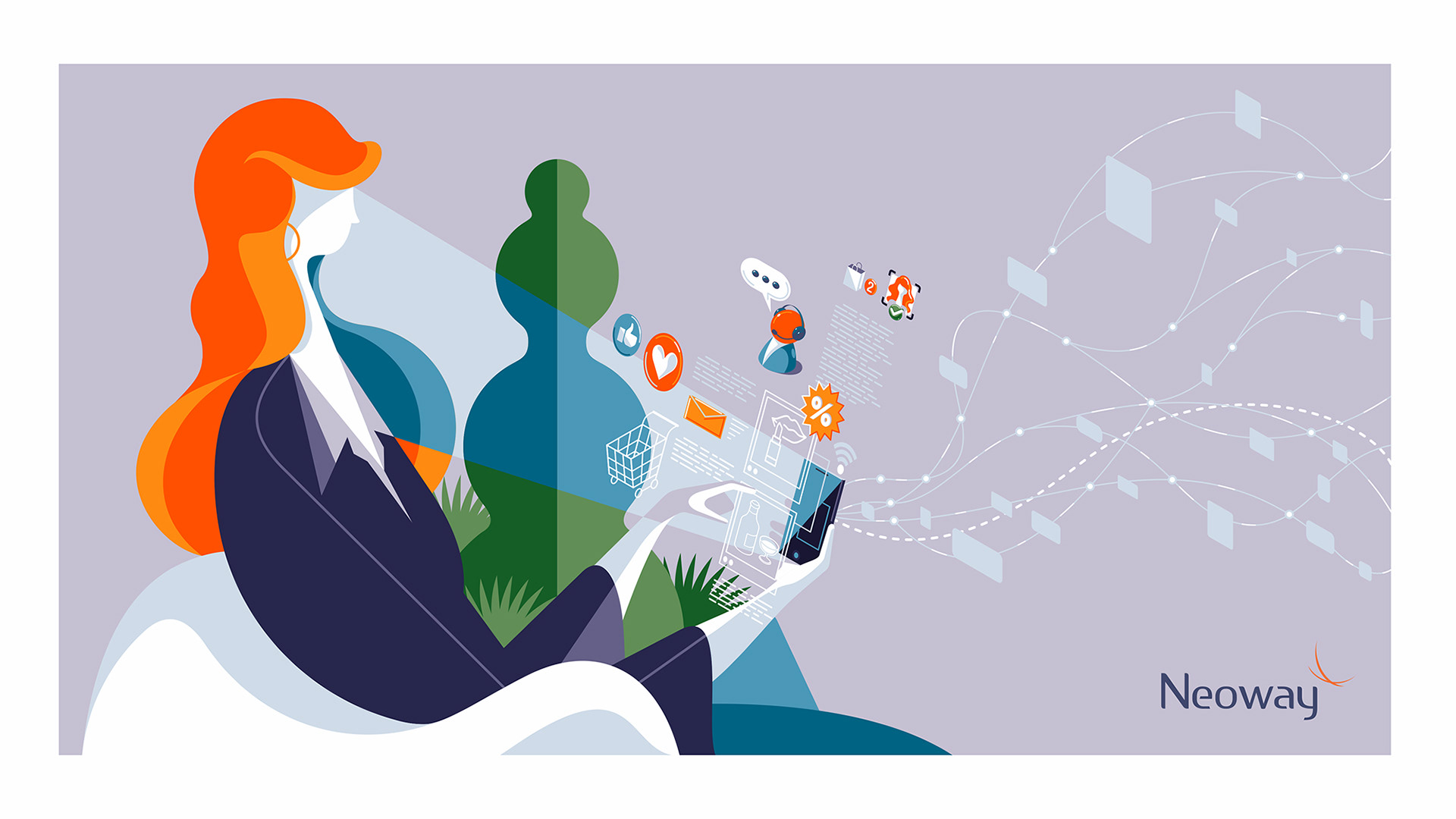 Neoway is the largest company in Latin America for Big Data Analytics and Artificial Intelligence for business and has products for different sectors. To help in the communication of these different products a unique illustration style was created, and several illustrations/infographics were developed to demonstrate the functionalities of their software in a didactic but at the same time creative and innovative way.