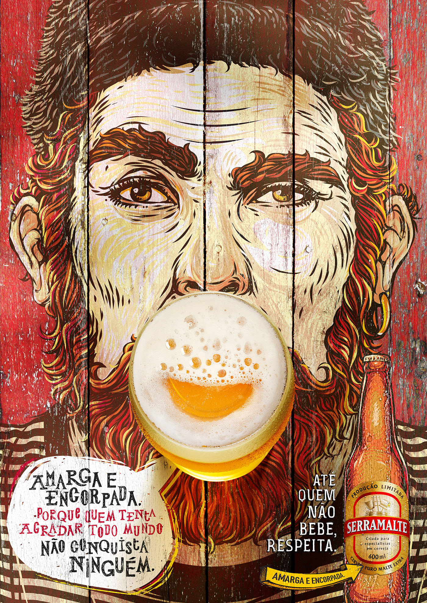 Portrait illustrations developed for SERRAMALTE, a vintage and traditional Brazilian brewery. Artwork usage included a wide range of platforms like printed, digital and out of home media.